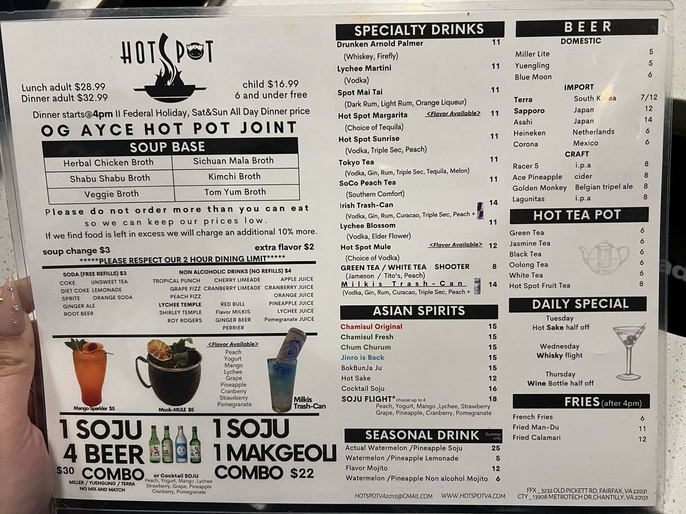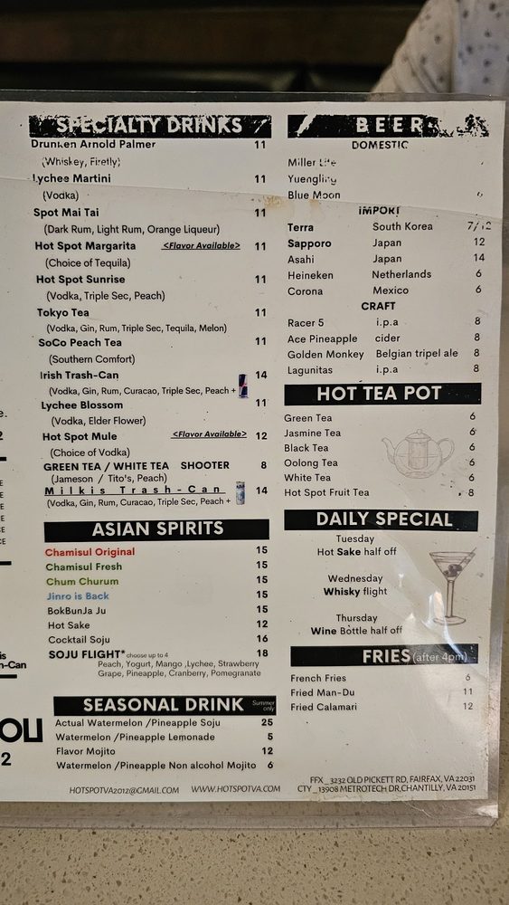 Welcome to Hot Spot, a blend of Japanese and Chinese cuisine located in Chantilly, VA. This trendy spot offers a wide range of options for all types of diners, including vegans and vegetarians. With amenities like delivery, takeout, and even catering services, Hot Spot caters to every dining need. The restaurant is wheelchair accessible and provides outdoor seating, including heated and covered options. The menu includes a variety of dishes perfect for brunch, lunch, and dinner. Whether you're in the mood for sushi, stir-fry, or noodles, Hot Spot has you covered. With happy hour specials, a full bar, and even free Wi-Fi, this spot is ideal for gathering with friends or family. Don't miss out on experiencing the flavors and ambiance of Hot Spot.